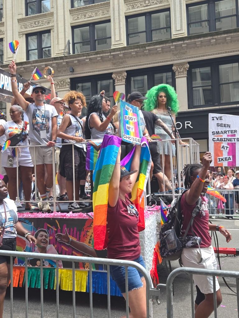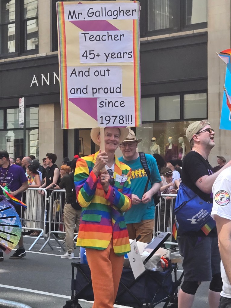 I didn’t know what to expect and I was not suitably prepared (note to self: bring water, snacks, sunscreen, a phone charger, and more glitter) but I fell even more in love with the queer community as I watched the energy, the creativity, the love, and the honesty pour from every participant and spectator. There were millions of us lining the street, cheering, sharing, and supporting. Karine Jean-Pierre was the Grand Marshal, and Zohran Mamdani made an appearance, walking alongside Letisha James. The crowds roared as they walked by, huge smiles and waving the trans pride flag. I danced, I cheered, I laughed, I learned. I even ran into a former student, all from my spot between East 20th and 21st streets. NY did not disappoint, although, for me, the city has always enveloped me in its arms each November as I make my way from Staten Island to Central Park.