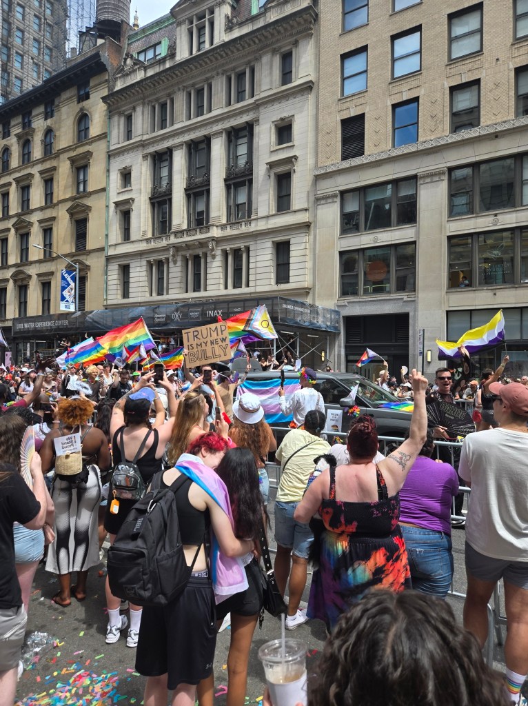I spent this past weekend in Manhattan. I was there to run a few races to earn credit for my entry into the 2026 TCS NYC Marathon and visit a good friend. This weekend also happened to coincide with the NYC Pride Parade, an annual demonstration (celebration) honoring the Stonewall Riots of 1969. I decided to go for the first time, and to be a part of the countless others celebrating queer identities. I wanted my voice to be heard, as an ally, as a teacher to queer students, as a family member, and as an empathetic human being. The theme of the parade this year was “Rise Up: Pride in Protest” and what better way to protest the current administration’s war on differences, their disgusting racist, homophobic, misogynistic policies which are destroying my beloved country and homeland.